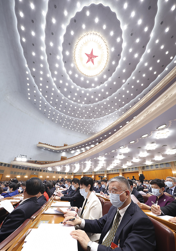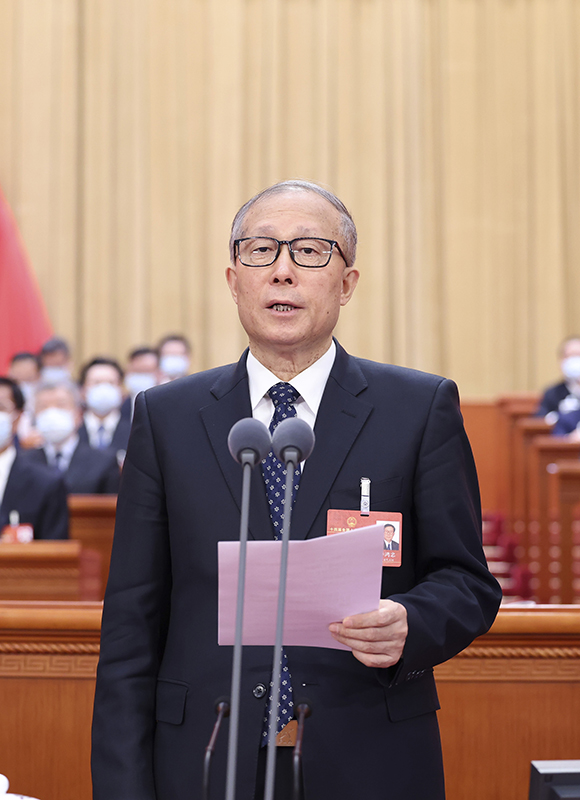 3月7日,十四届全国人大一次会议在北京人民大会堂举行第二次全体会议。受十三届全国人大常委会委托,栗战书委员长向大会报告全国人大常委会工作。