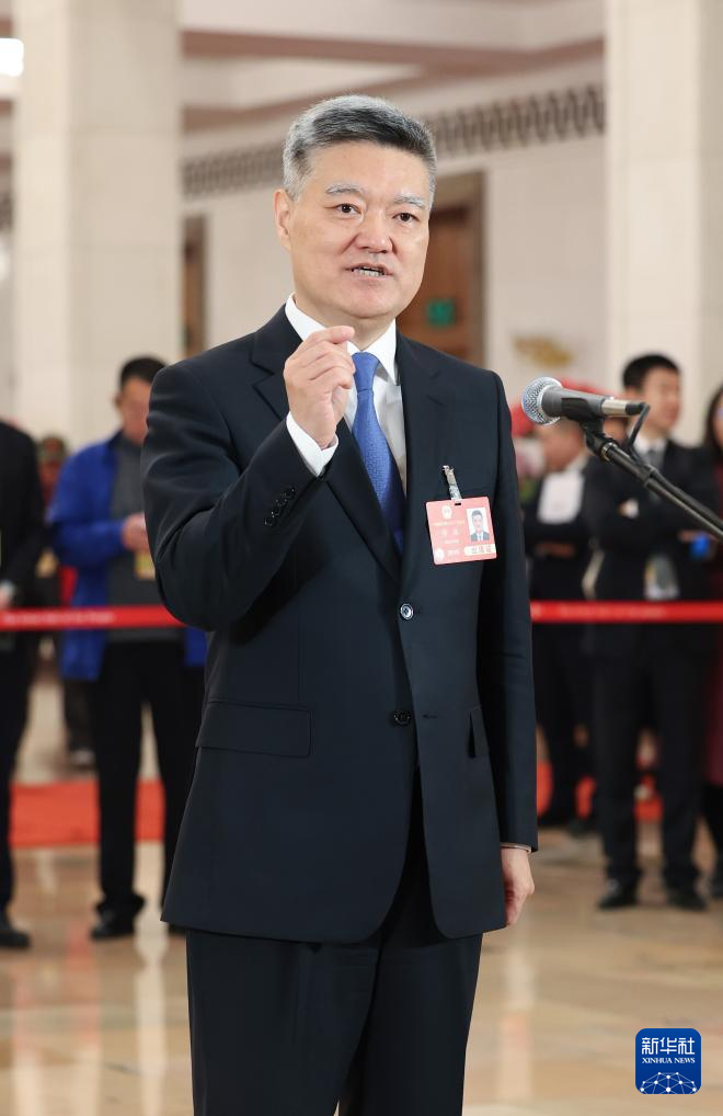 3月8日,第十四届全国人民代表大会第三次会议第二场“代表通道”集中采访活动在北京人民大会堂举行。这是全国人大代表蔡强接受媒体采访。新华社记者 吕帅 摄