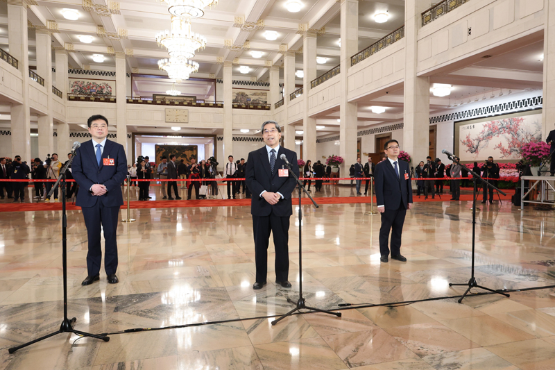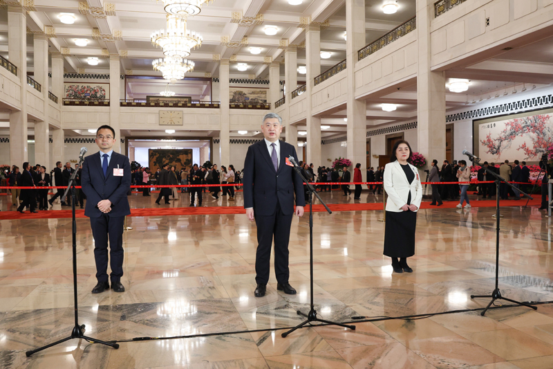 3月4日,全国政协十四届三次会议首场“委员通道”集体采访活动在北京人民大会堂举行。