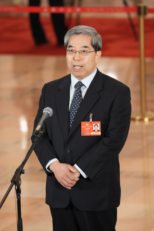 3月4日,全国政协十四届三次会议首场“委员通道”集体采访活动在北京人民大会堂举行。这是全国政协委员马建堂接受媒体采访。