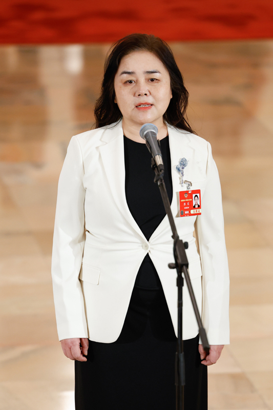 3月4日,全国政协十四届三次会议首场“委员通道”集体采访活动在北京人民大会堂举行。这是全国政协委员乔红接受媒体采访。