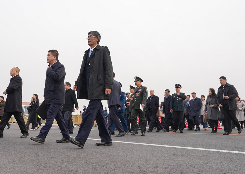 3月7日,全国政协十四届三次会议在北京人民大会堂举行第二次全体会议。这是全国政协委员走向会场。