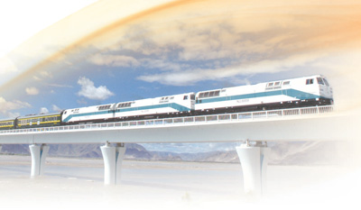 2006年7月1日,青藏铁路全线通车,从西藏拉萨开出的列车在铁轨上飞驰。 |