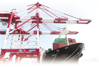 1月19日,在中国(山东)自贸试验区,一艘货轮在青岛港前湾集装箱码头装卸货物。 |
