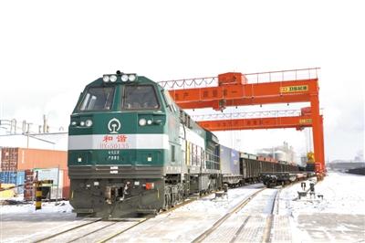 1月13日,内蒙古呼伦贝尔扎兰屯市新年首趟出口班列发往“一带一路”沿线国家。 |