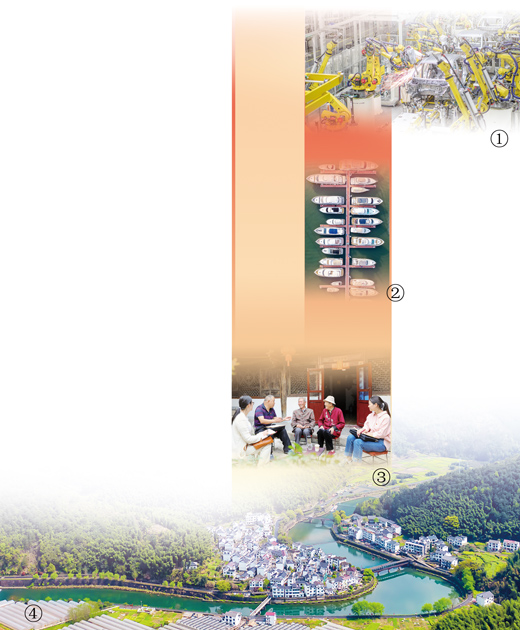 图片说明: 图①:在重庆一家智能工厂焊装车间,点焊机器人在进行焊接作业。 新华社记者 黄 伟摄 图②:停靠在海南三亚某码头的游船。 新华社记者 郭 程摄 图③:云南陆良县干部在马街镇金家村走访。 王 勇摄(影像中国) 图④:浙江杭州市淳安县枫树岭镇下姜村风貌。 毛勇锋摄(影像中国) |