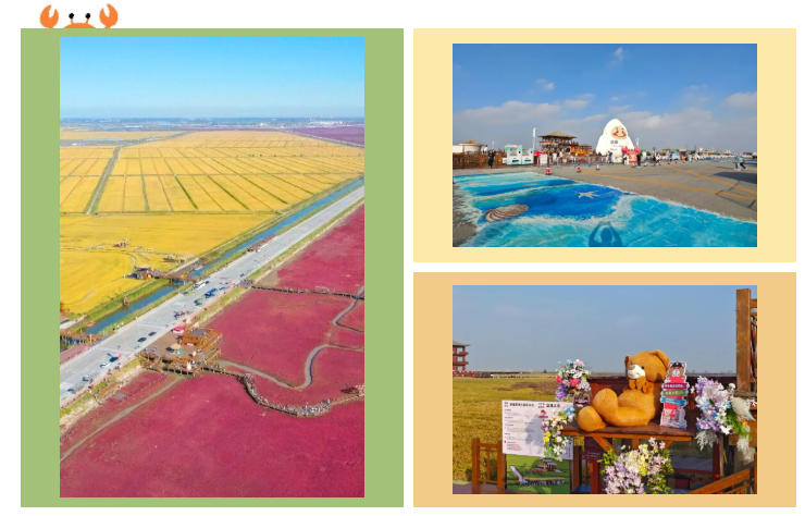●红滩盛景:沿着18公里廊道前行,火红的碱蓬草像地毯般铺满滩涂。偶尔有丹顶鹤掠过,给这幅画添了灵动。这片红曾只剩2000亩,如今通过生态修复,又重新“红”遍了滩涂,成了“中国最北海岸线”的生态名片。