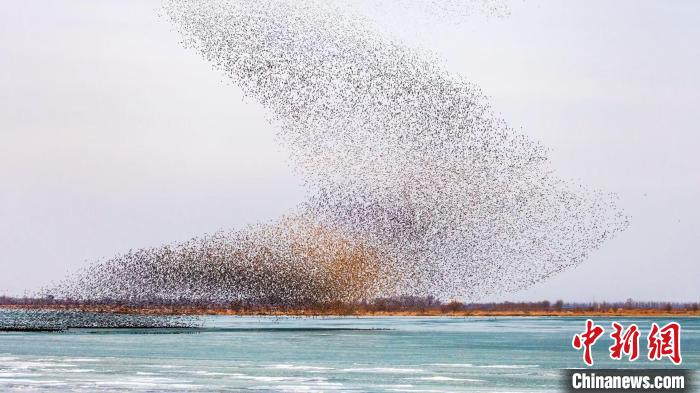 近日,北归候鸟在盘锦形成“鸟浪”奇观。
