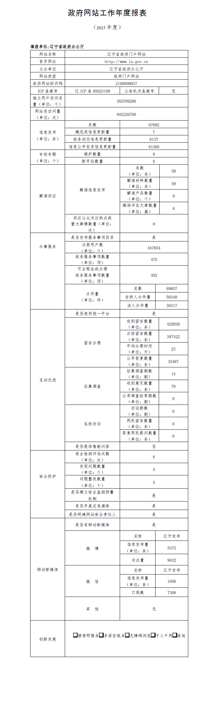 辽宁省政府门户网站工作年度报表