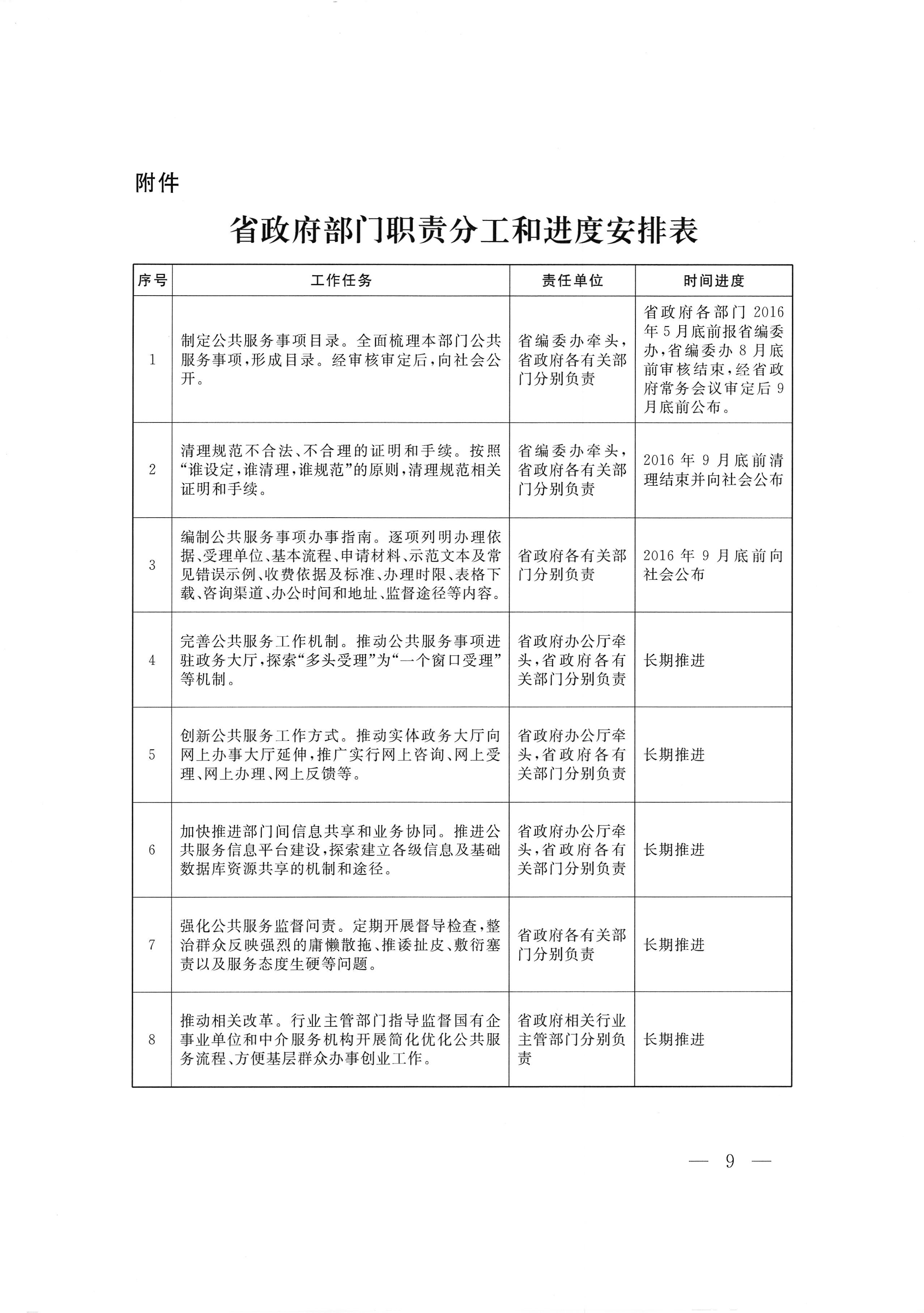 附件:省政府部门职责分工和进度安排表
