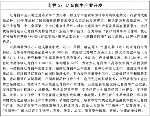 (七)依靠建设大项目推进畜牧业三次产业融合。总结推广辉山乳业、禾丰牧业等大型畜牧业集团在推进畜牧业三次产业融合发展的先进经验,鼓励大型畜产品加工企业、饲料加工企业建设养殖基地、发展物流业、金融服务业等生产性服务业。大力开展招商引资,积极引进雄厚实力、带动能力较强的行业领军企业,紧紧依靠建设大项目推动畜牧业供给侧结构性改革。