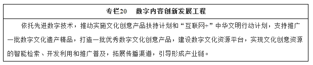 鼓励创作当代数字创意内容精品。强化高新技术支撑文化产品创作的力度,提高数字创意内容产品原创水平,加快出版发行、影视制作、演艺娱乐、艺术品、文化会展等行业数字化进程,提高动漫游戏、数字音乐、网络文学、网络视频、在线演出等文化品位和市场价值。鼓励多业态联动的创意开发模式,提高不同内容形式之间的融合程度和转换效率,努力形成具有世界影响力的数字创意品牌,支持中华文化“走出去”。