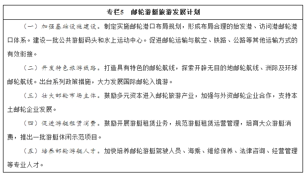 加大海岛旅游投资开发力度,建设一批海岛旅游目的地。加快海南国际旅游岛、平潭国际旅游岛建设,推进横琴岛等旅游开发。制定邮轮旅游发展规划,有序推进邮轮旅游基础设施建设,改善和提升港口、船舶及配套设施的技术水平。推动国际邮轮访问港建设,扩大国际邮轮入境外国旅游团15天免签政策适用区域,有序扩大试点港口城市范围。支持天津、上海、广州、深圳、厦门、青岛等地开展邮轮旅游。制定游艇旅游发展指导意见,发展适合大众消费的中小型游艇。支持长江流域等有条件的江河、湖泊有序发展内河游轮旅游。(国家旅游局、国家发展改革委、工业和信息化部、公安部、交通运输部、水利部、国家海洋局等)