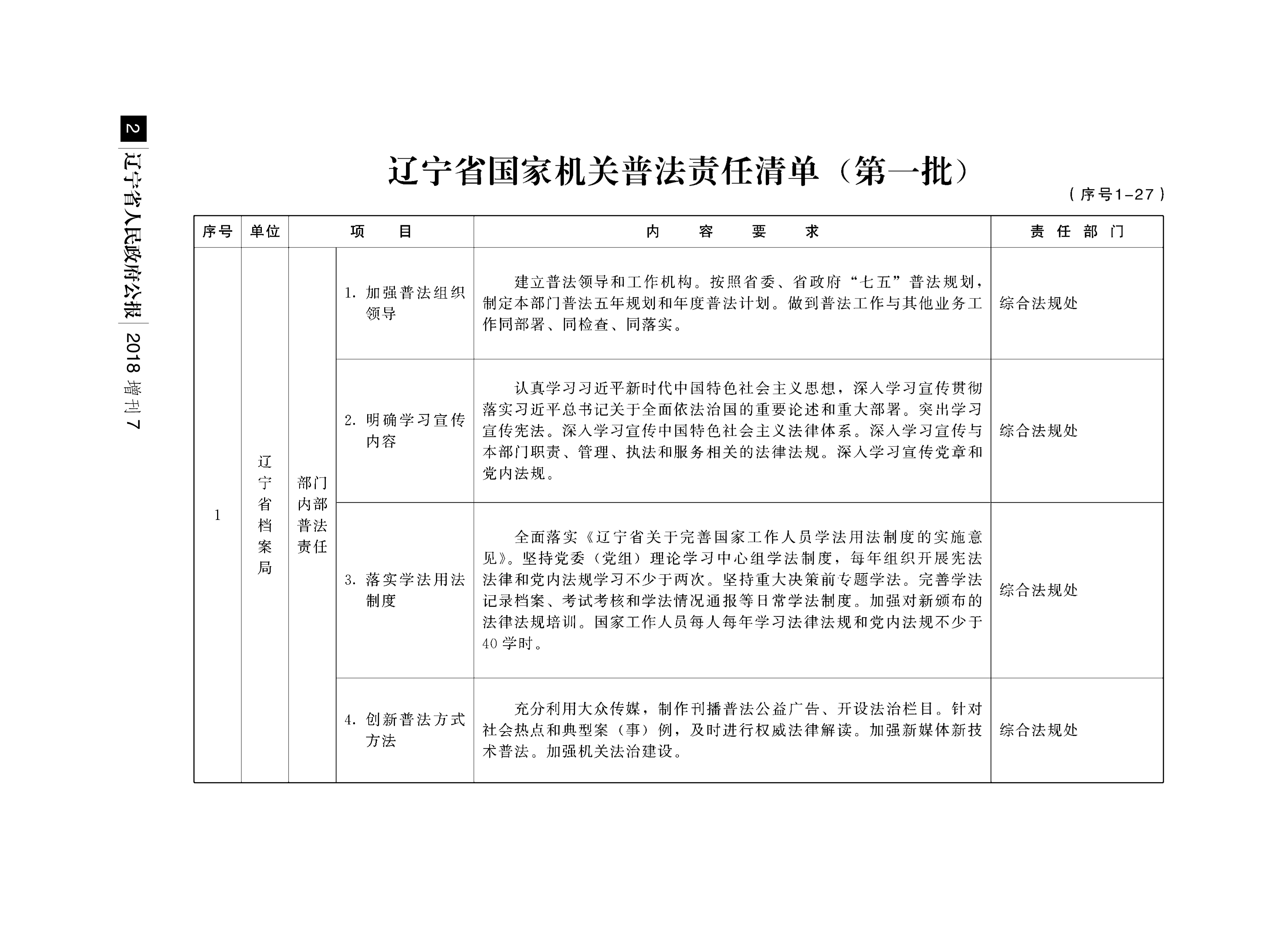 《辽宁省国家机关普法责任清单(第一批)》已经省委、省政府领导同志同意,现印发给你们,请结合实际认真贯彻落实。
