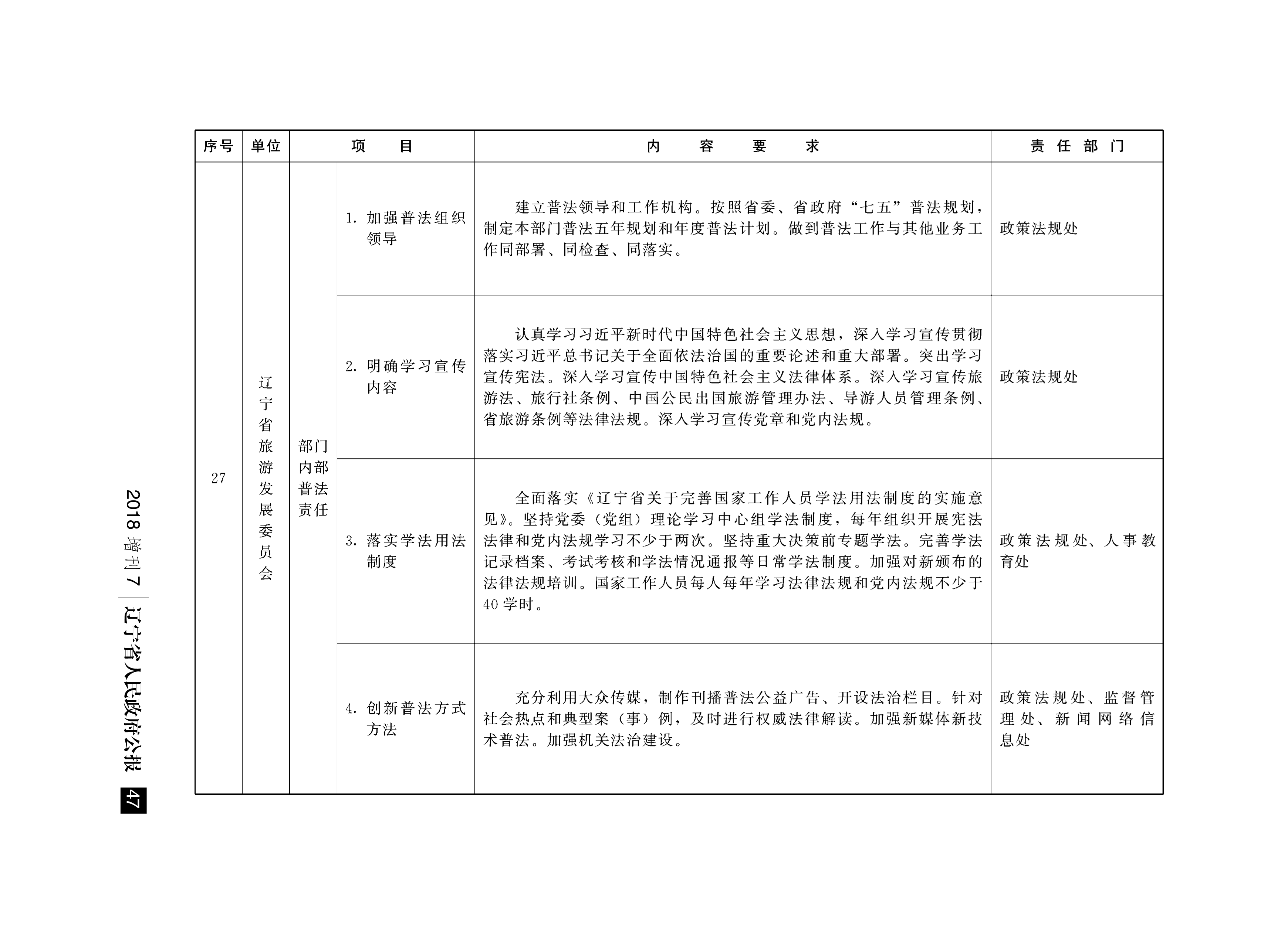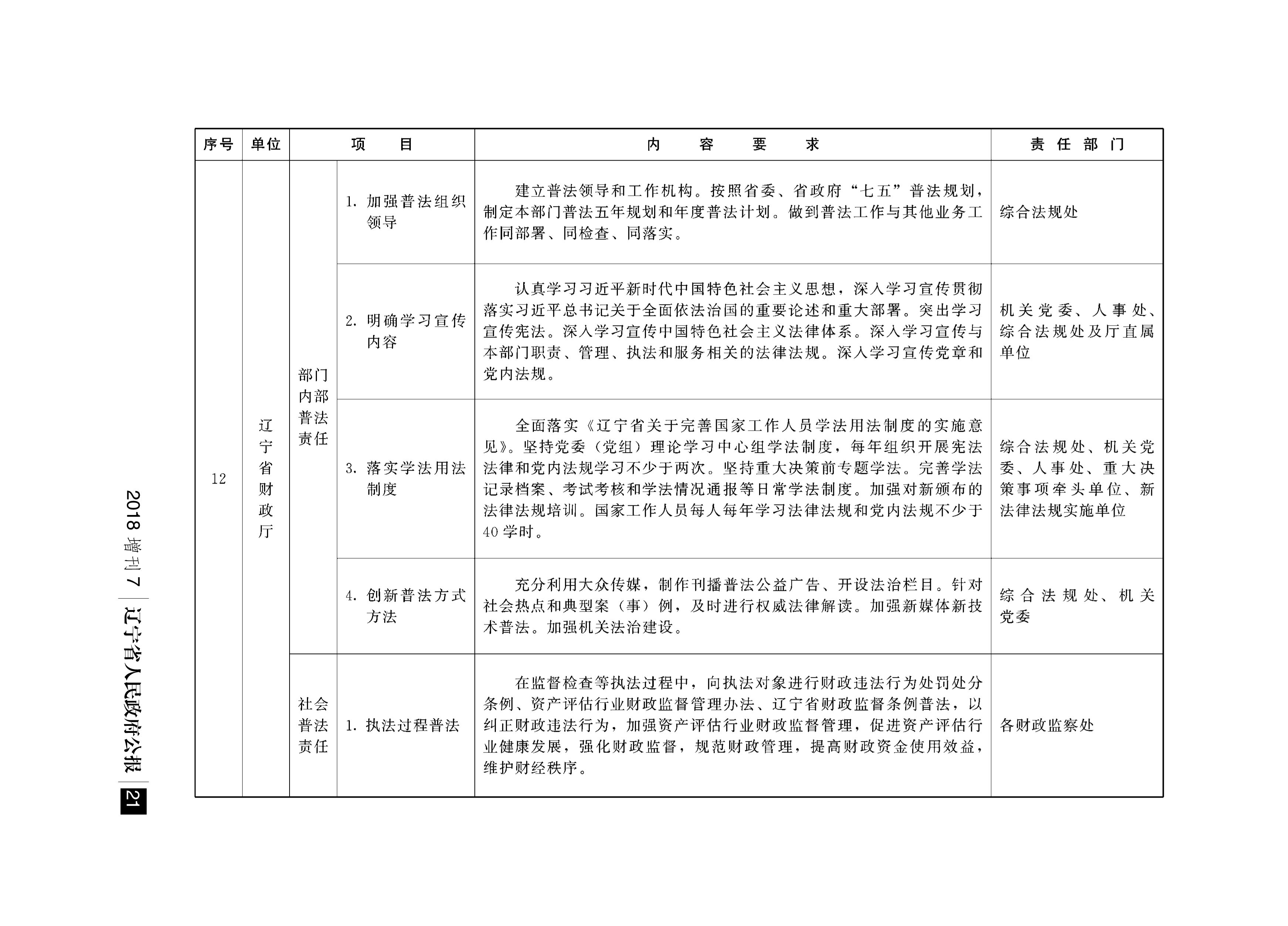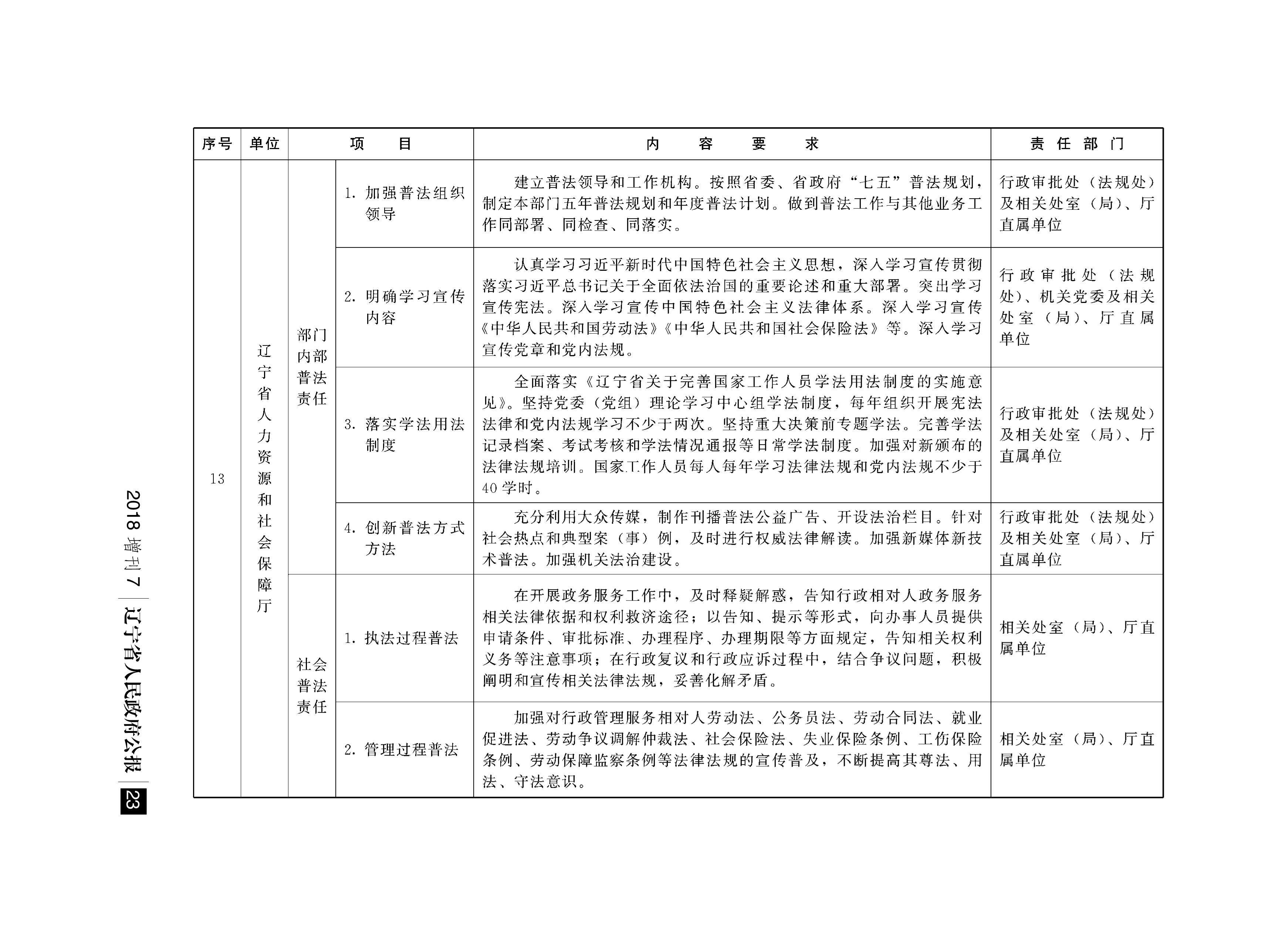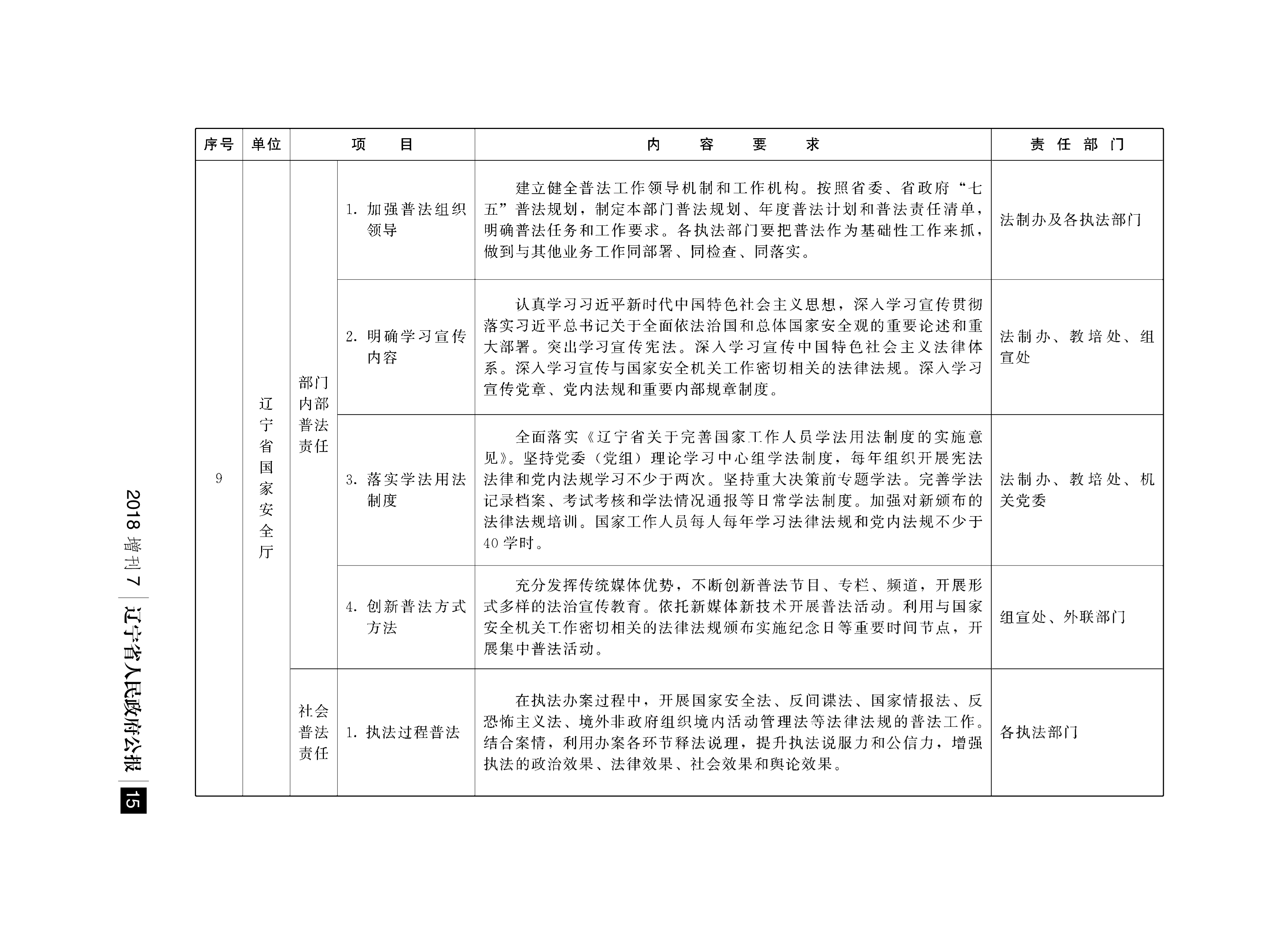 建立普法责任清单制度,是贯彻落实国家机关“谁执法谁普法”普法责任制的重要举措。普法责任清单明确了国家机关应当承普法工作责任,是开展普法工作的重要遵循。国家机关要把普法作为法治辽宁、平安辽宁建设的基础性工作,切实纳入本部门本单位工作总体安排,做到与其他业务工作同部署、同检查、同落实,努力在全社会形成尊法学法守法用法的浓厚氛围。按照普法责任制要求,建立健全普法领导和工作机构,明确普法任务和工作要求,制定普法中长期规划和年度普法计划,明确责任部门、责任人员和时限,并根据相关法律法规、规范性文件的调整,及时进行补充完善。