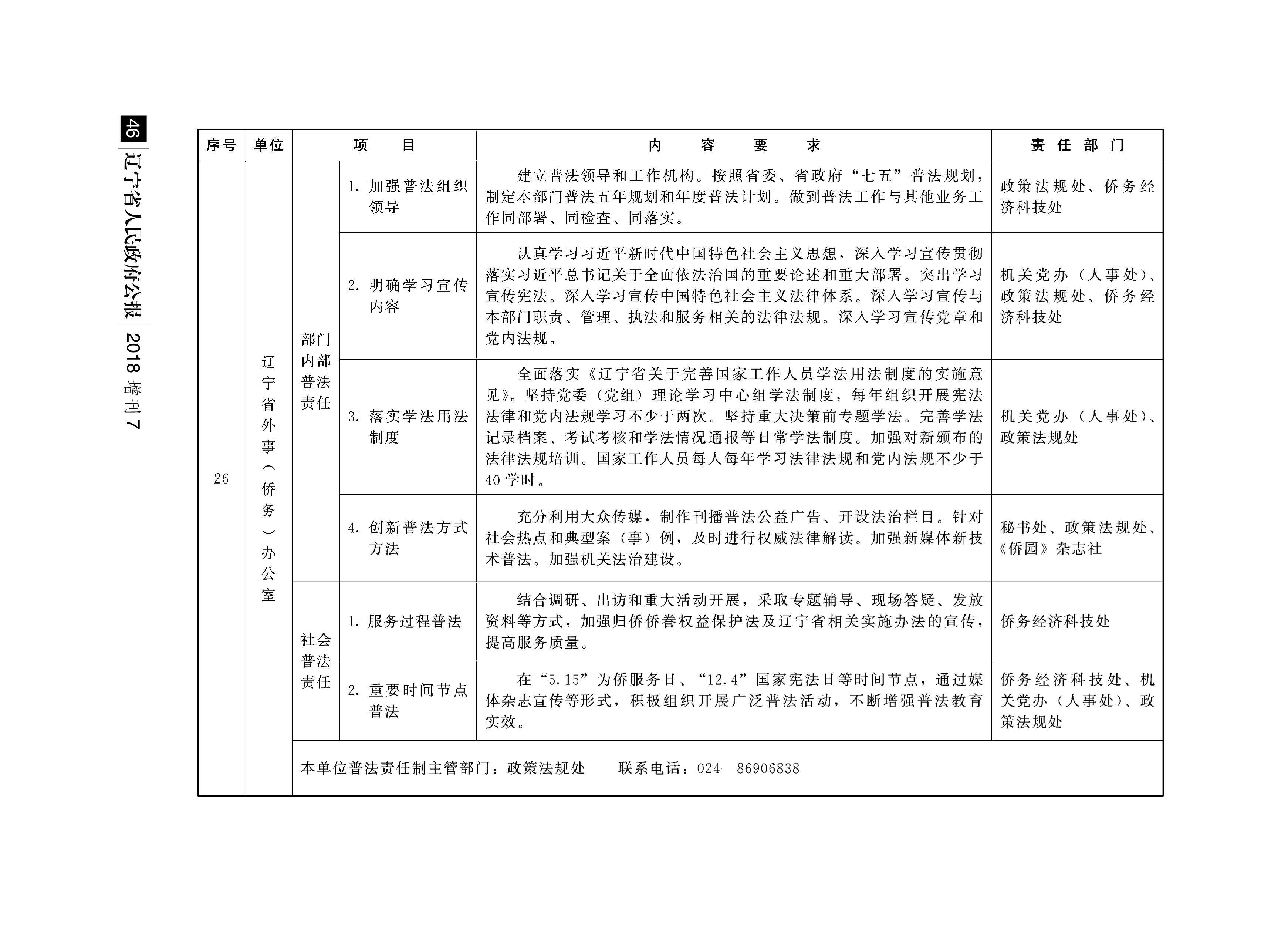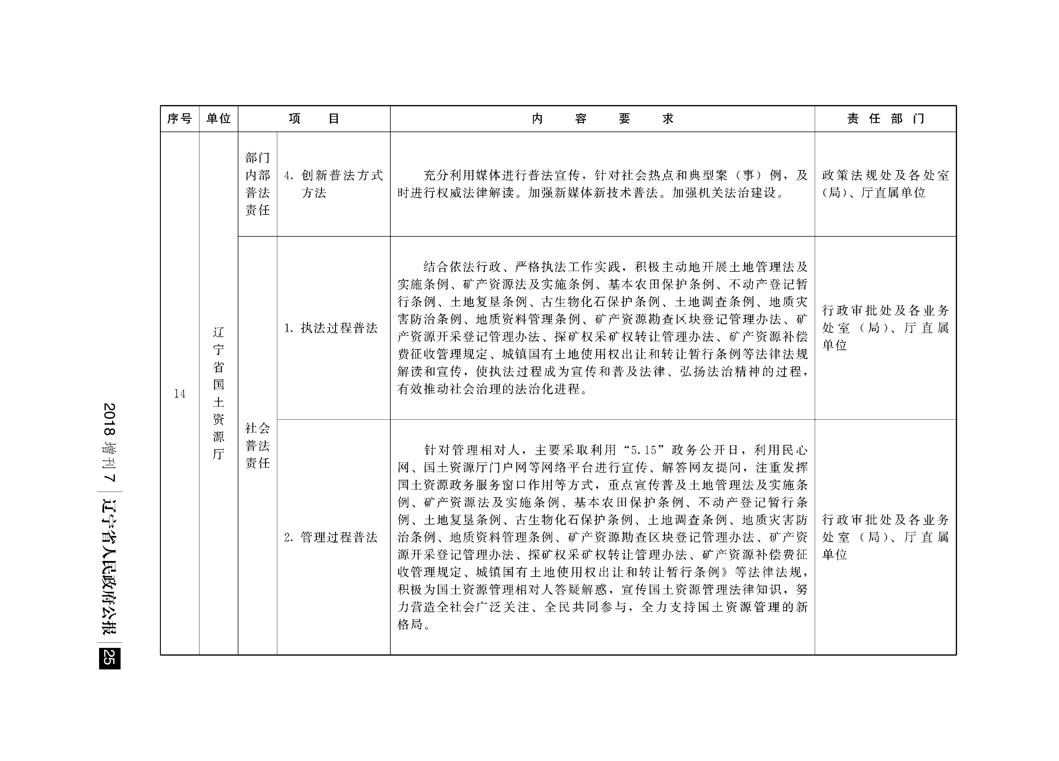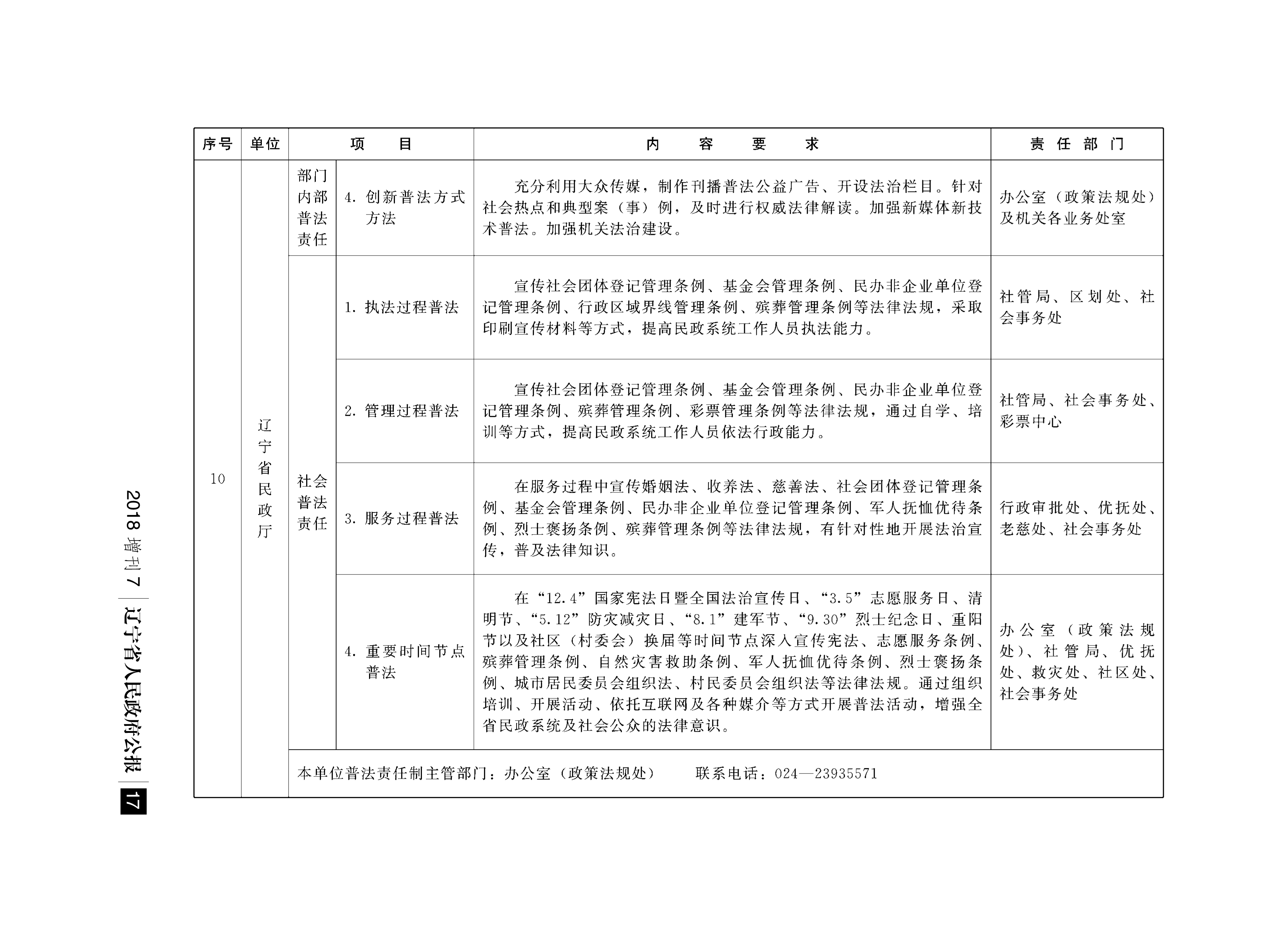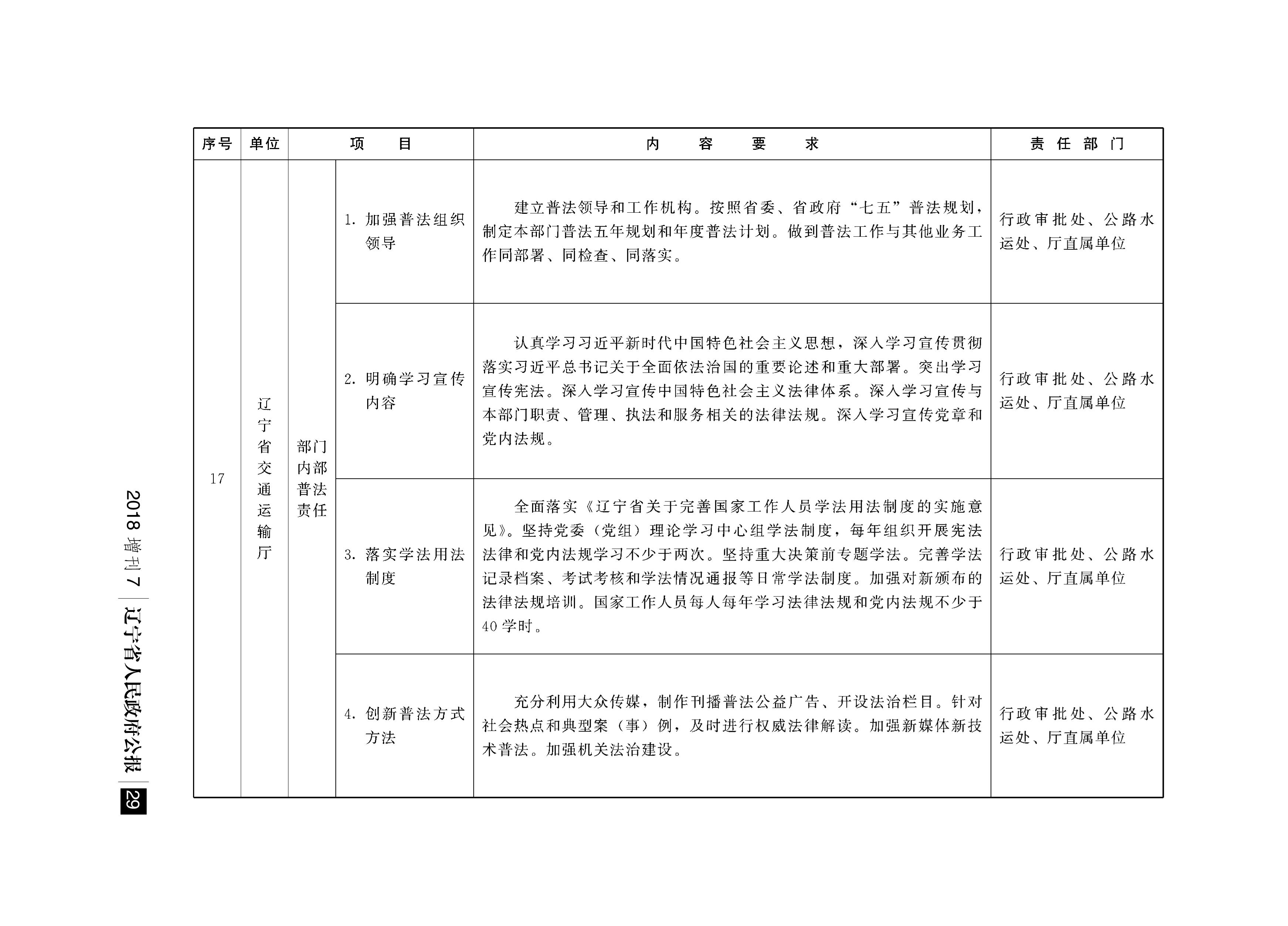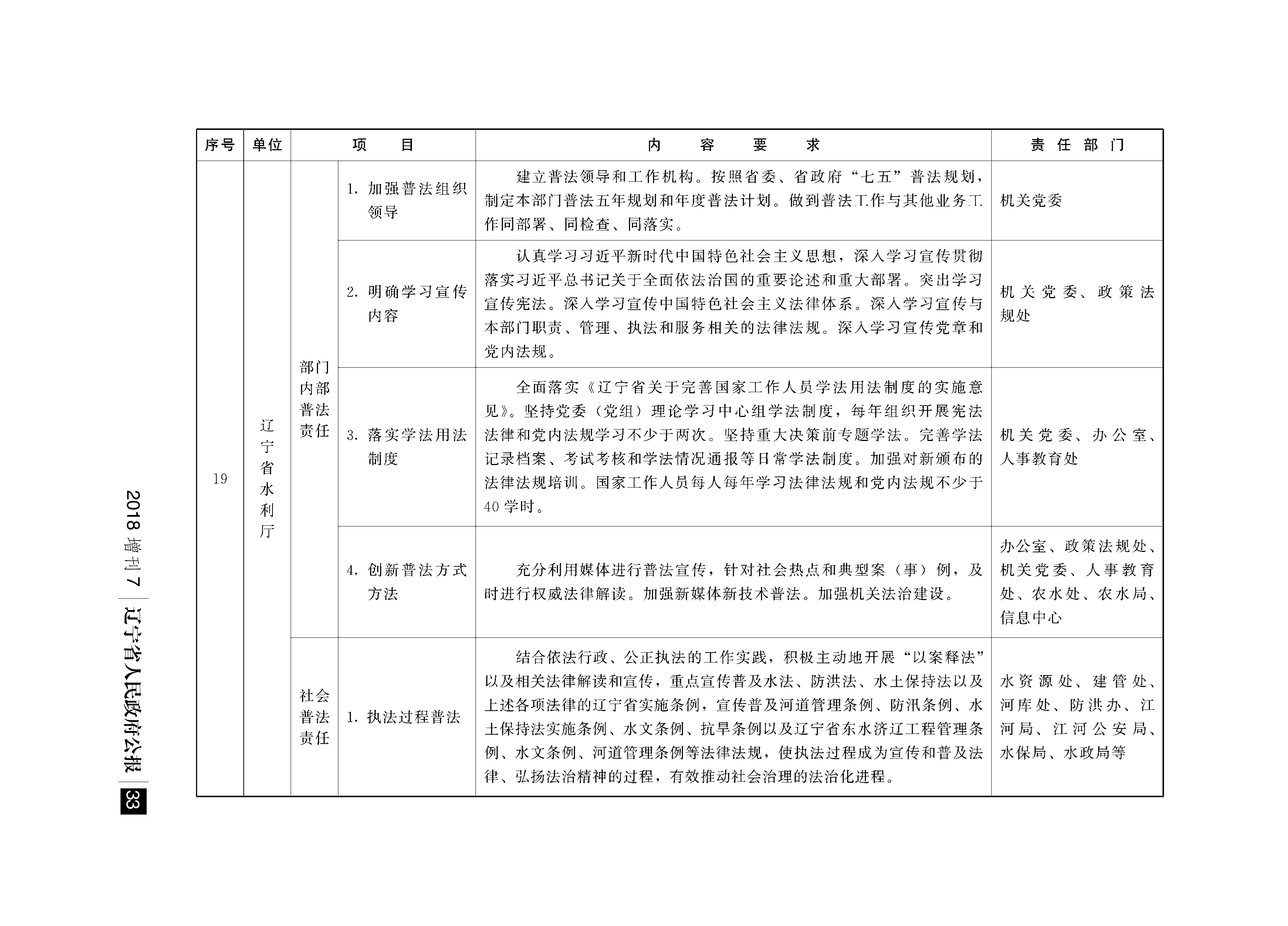 建立普法责任清单制度,是贯彻落实国家机关“谁执法谁普法”普法责任制的重要举措。普法责任清单明确了国家机关应当承普法工作责任,是开展普法工作的重要遵循。国家机关要把普法作为法治辽宁、平安辽宁建设的基础性工作,切实纳入本部门本单位工作总体安排,做到与其他业务工作同部署、同检查、同落实,努力在全社会形成尊法学法守法用法的浓厚氛围。按照普法责任制要求,建立健全普法领导和工作机构,明确普法任务和工作要求,制定普法中长期规划和年度普法计划,明确责任部门、责任人员和时限,并根据相关法律法规、规范性文件的调整,及时进行补充完善。