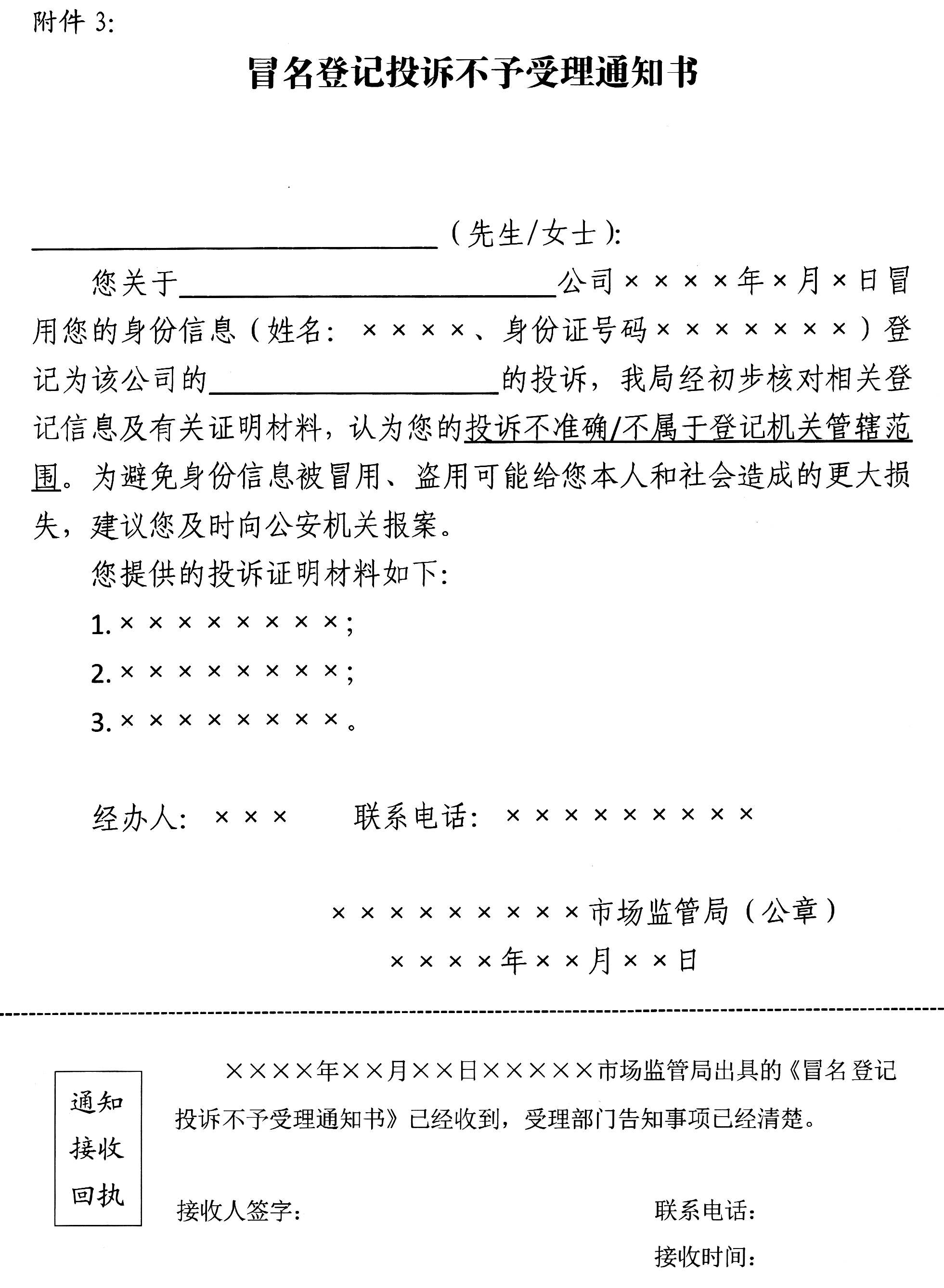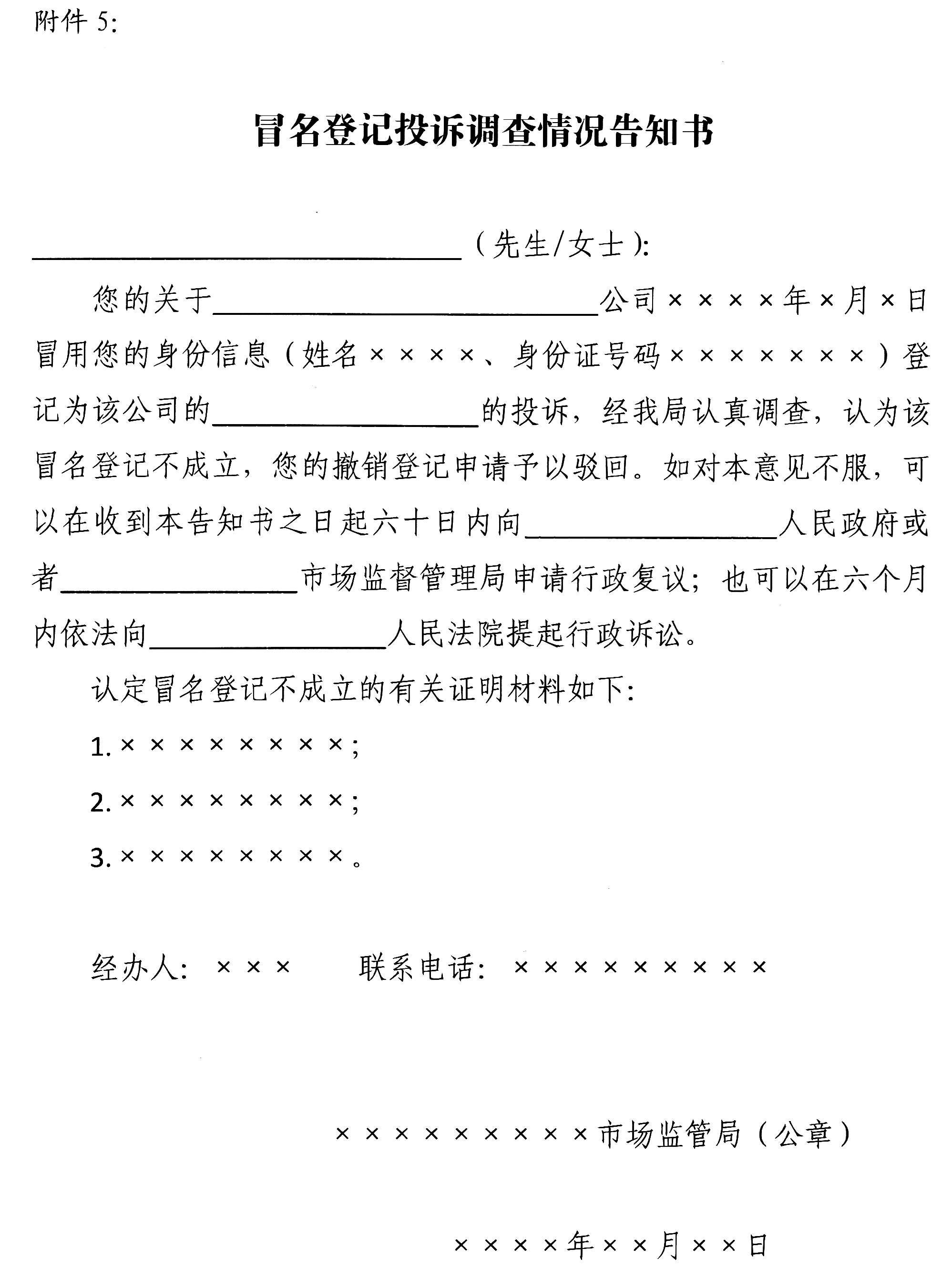 2.撤销冒名登记投诉办理有关文书式样
