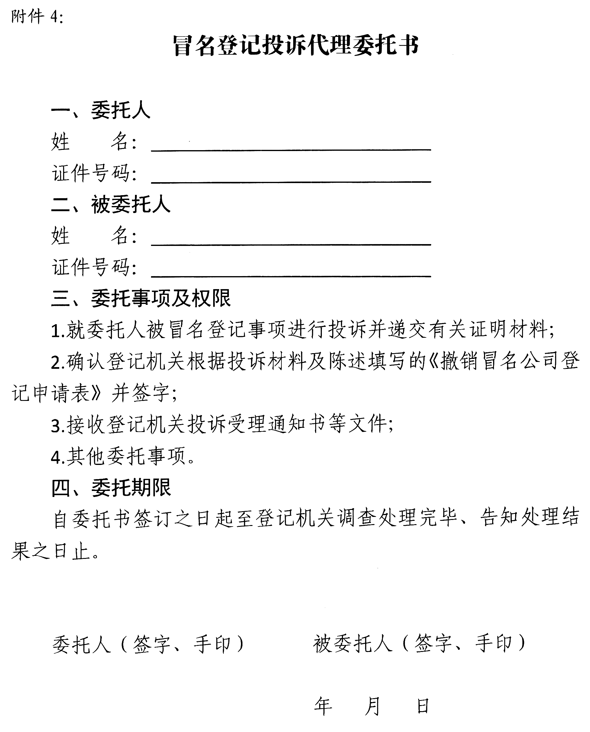 4.代办机构或人员在委托代理权限范围内冒用投诉人身份取得相关公司登记的;