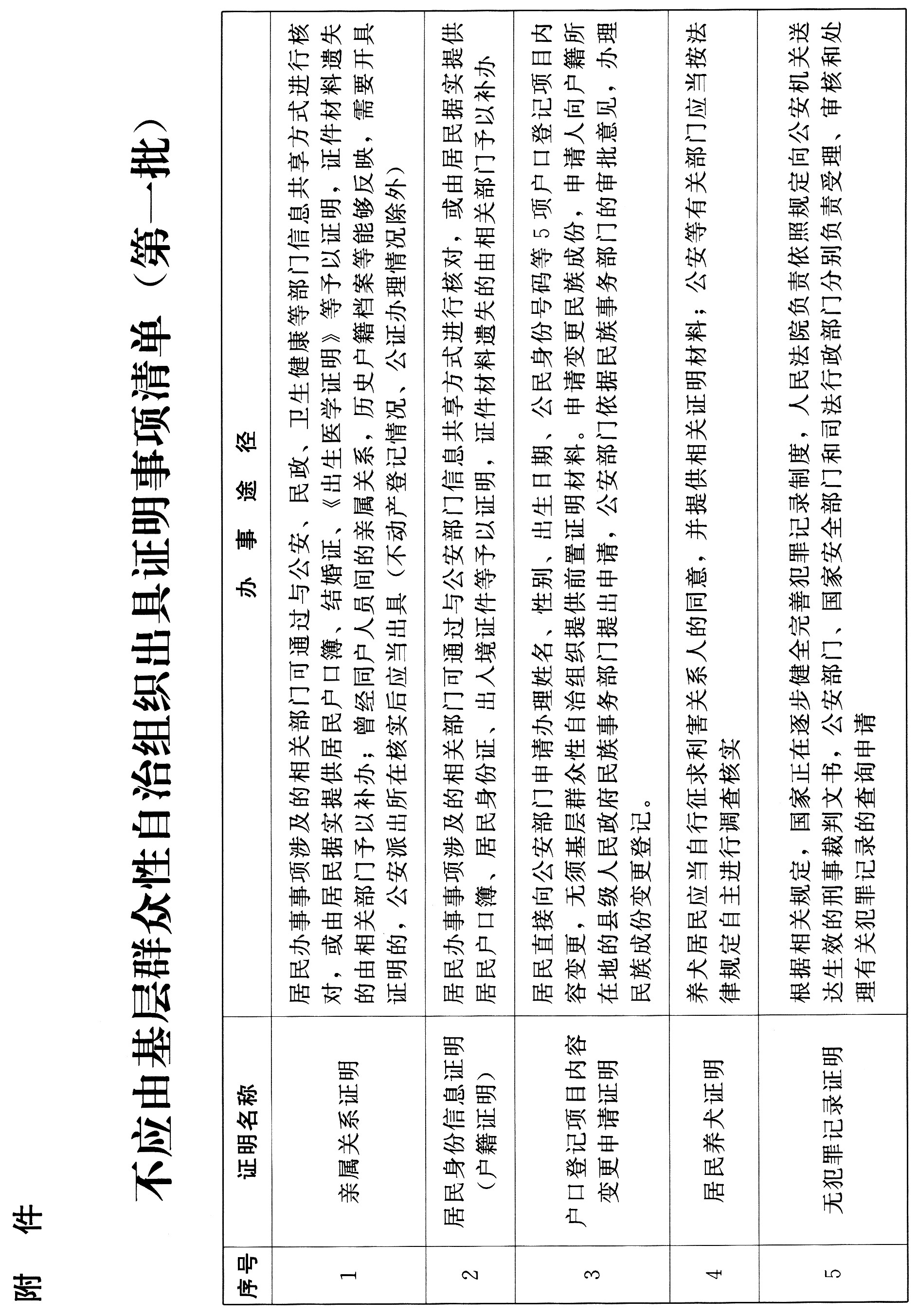 附件:不应由基层群众性自治组织出具证明事项清单(第一批)