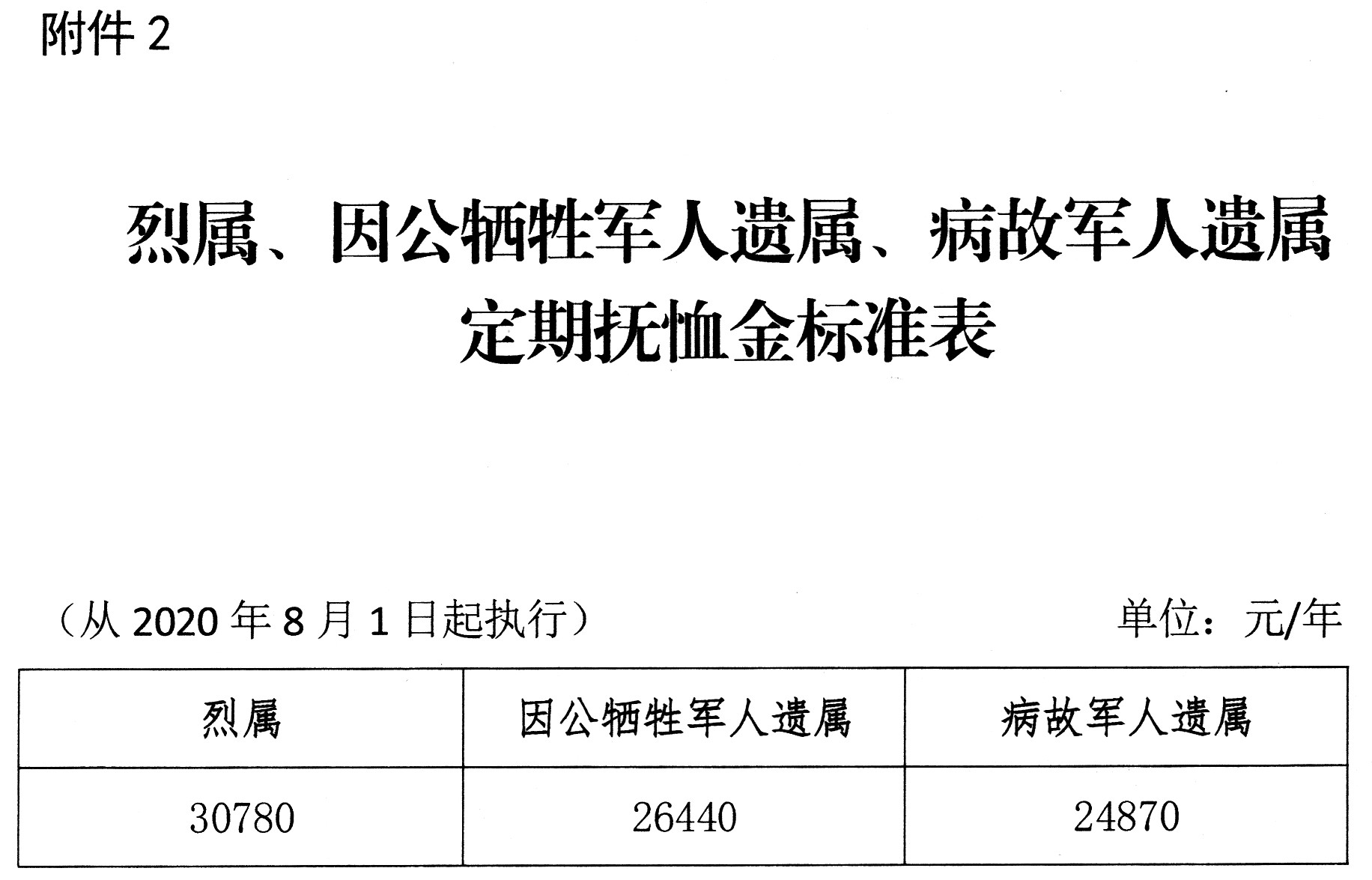 2.烈属、因公牺牲军人遗属、病故军人遗属定期抚恤金标准表