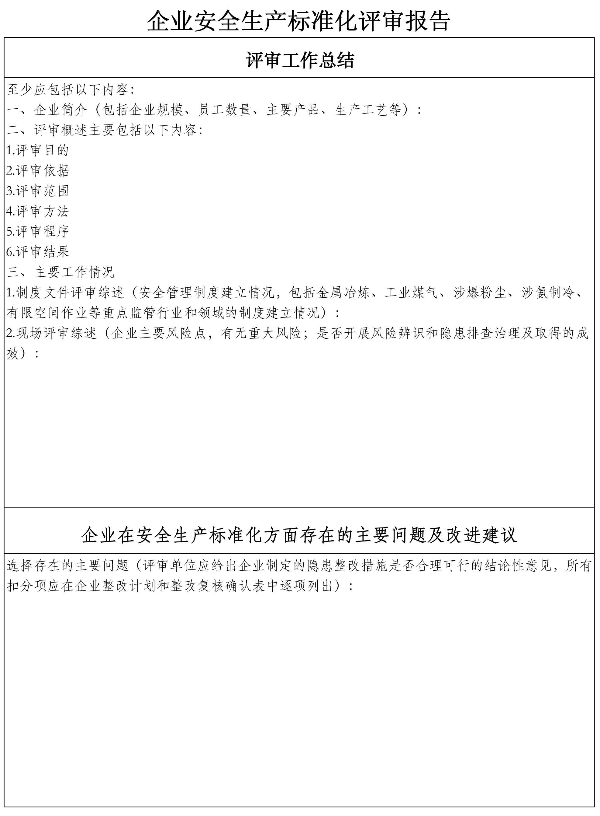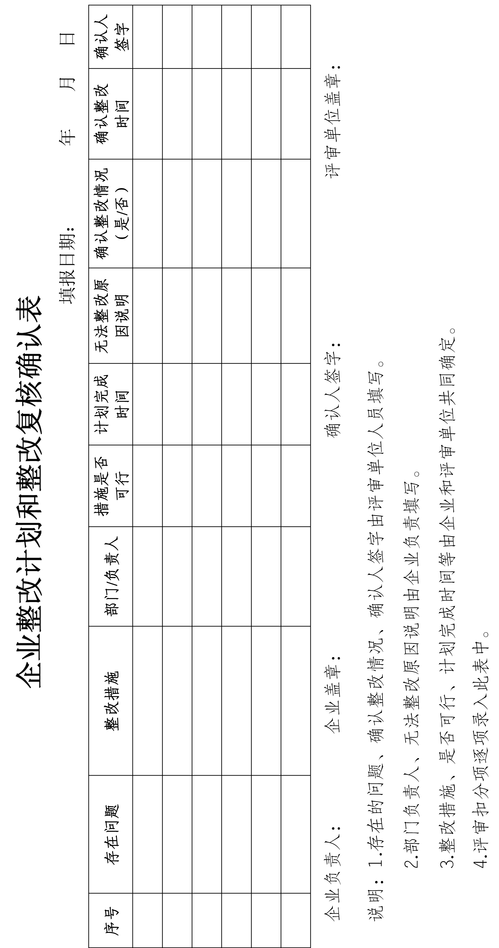 (八)评审单位要对企业制定的整改措施计划的合理性进行审查,在评审总结中应给出是否合理可行的意见和建议。