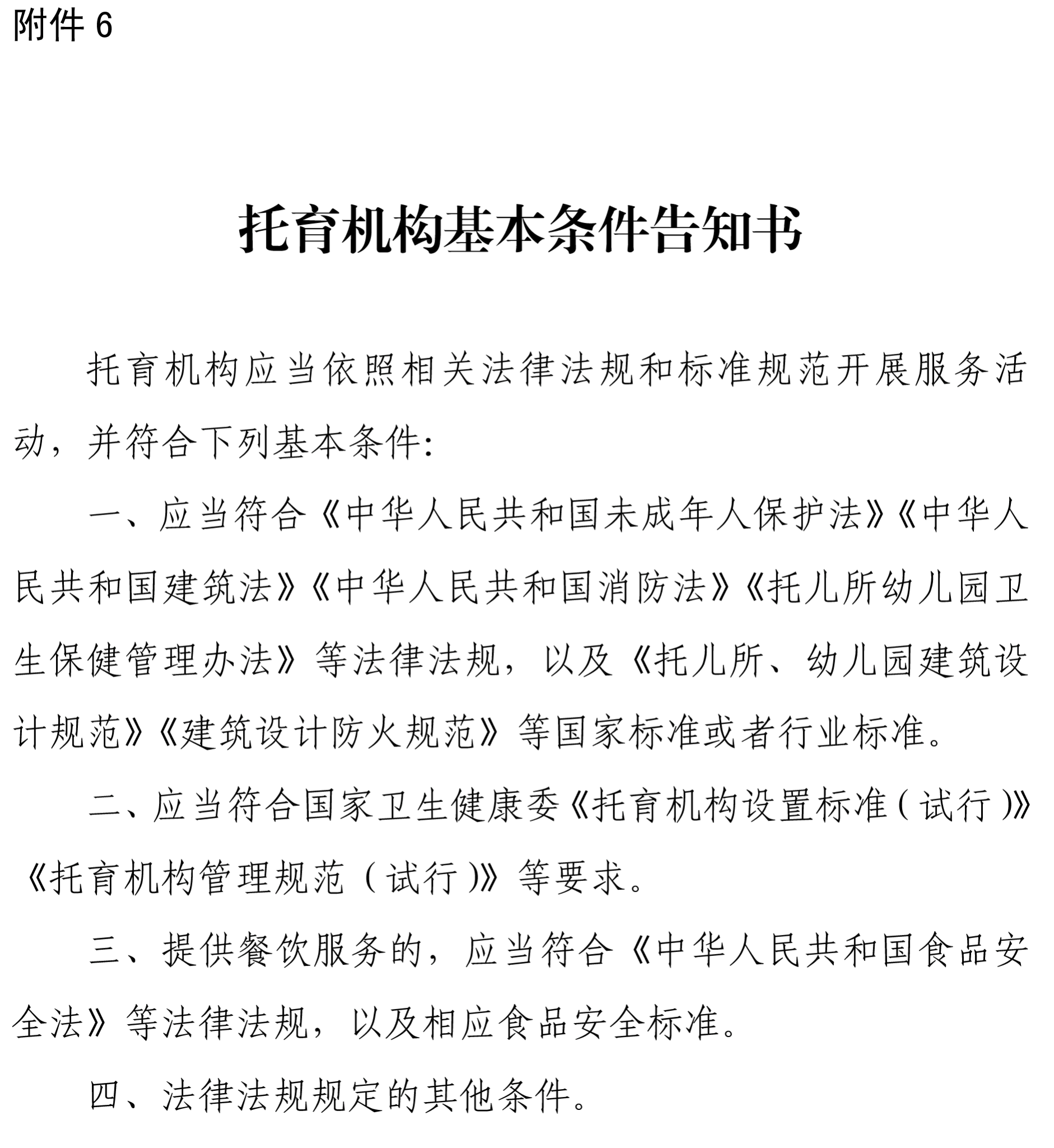第四条 托育机构的设置要求、场地设施、人员规模等,应当符合国家《托育机构设置标准(试行)》等相关规定。