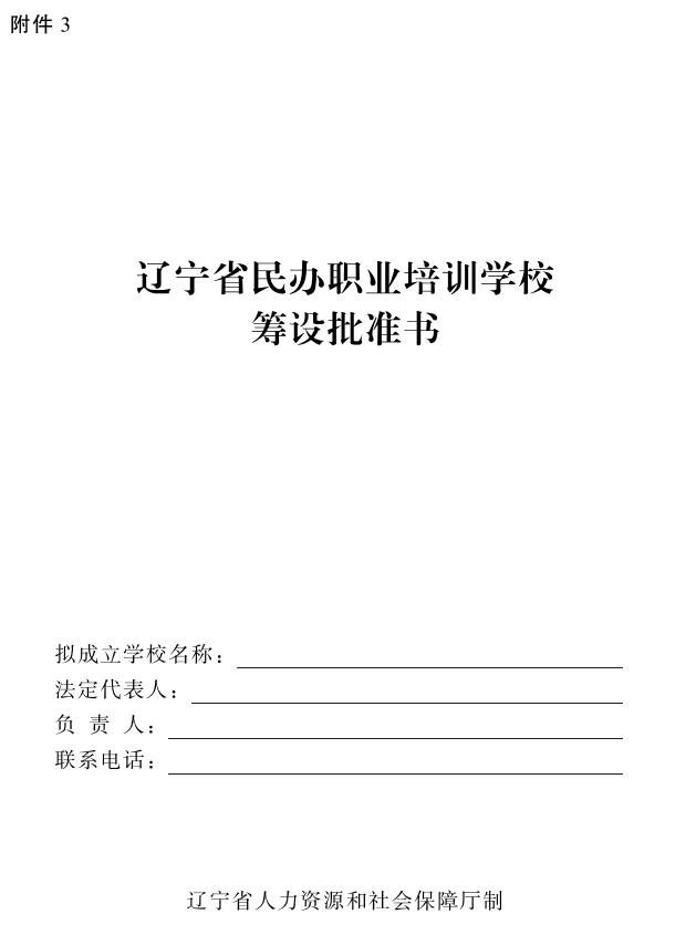 3.《辽宁省民办职业培训学校审批表》(详见附件4)。