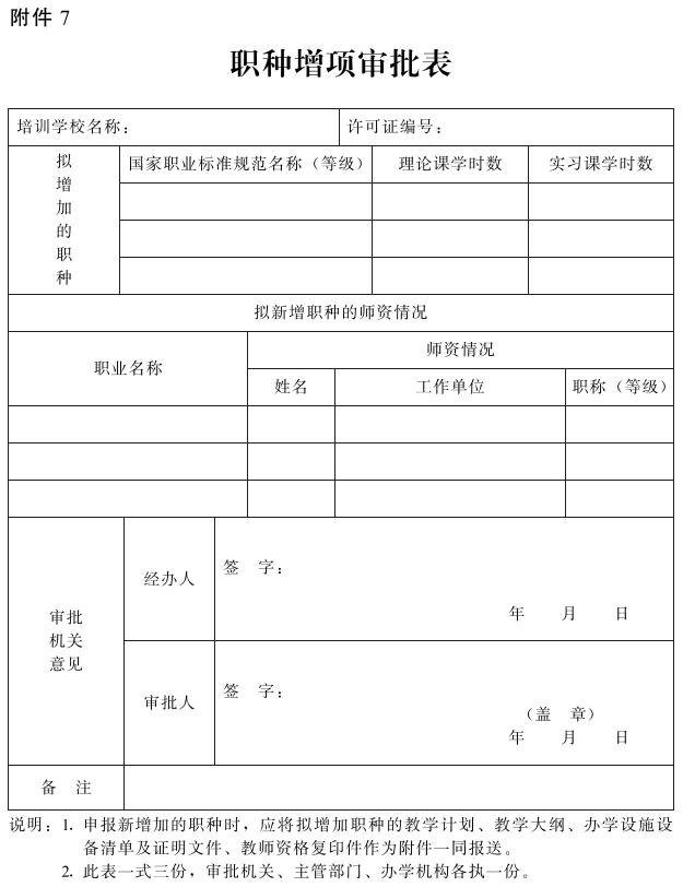 2.《职种增项审批表》(详见附件7)。