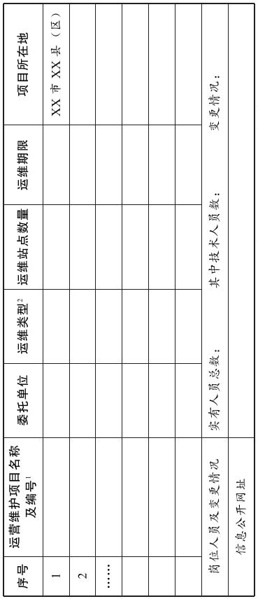 注:1.首次填报时,应填报所有在运维期内的项目情况,下季度起仅需报送新增项目及其他存在变化项目情况;