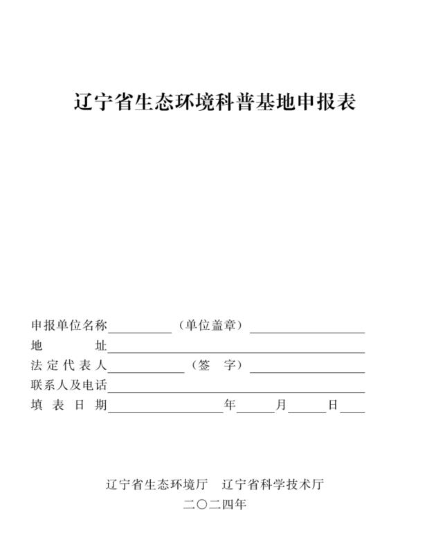 第八条 申报单位按要求填报《辽宁省生态环境科普基地申报表》(见附表)及相关附件和证明材料,报送至市级生态环境主管部门。