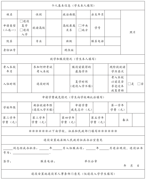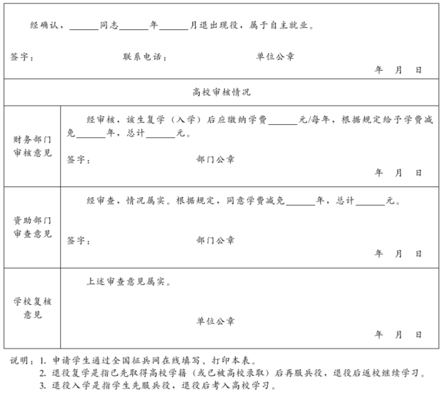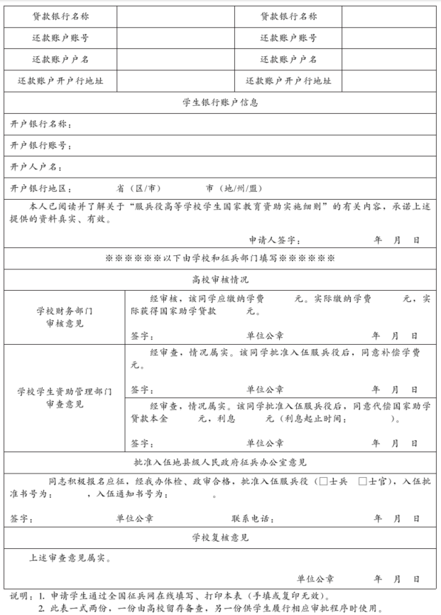 应征入伍服兵役高等学校学生国家教育资助申请表Ⅱ