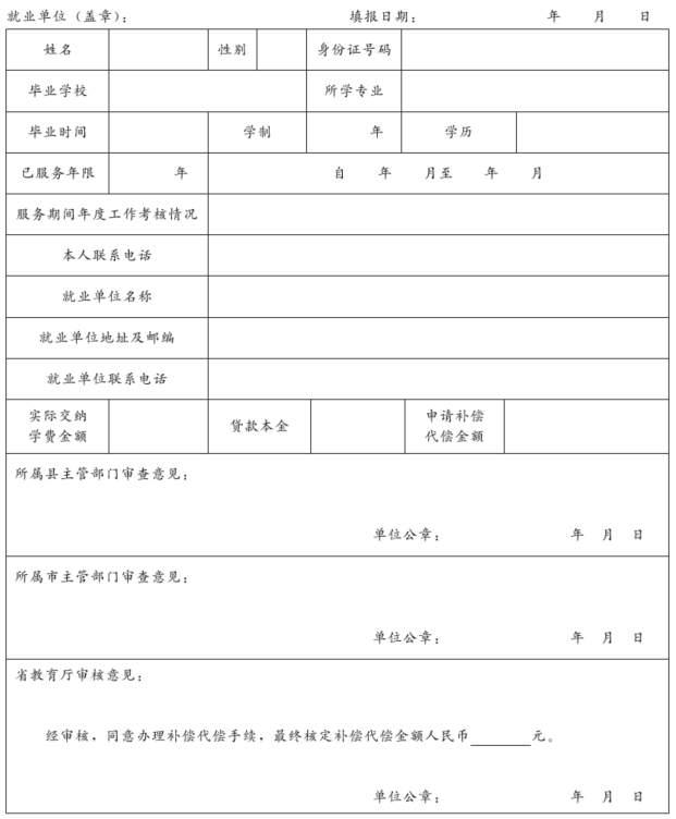 附表9:农村义务教育阶段学校教师特设岗位计划学费补偿和国家助学贷款代偿申请表
