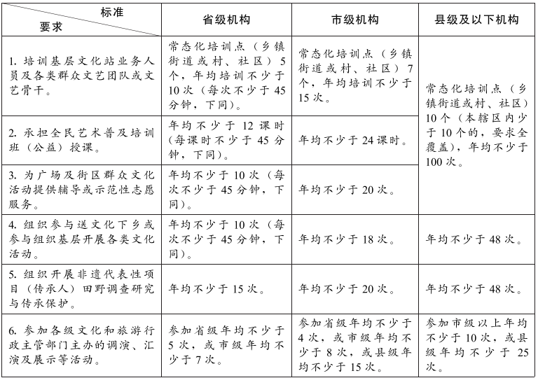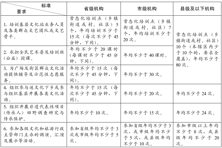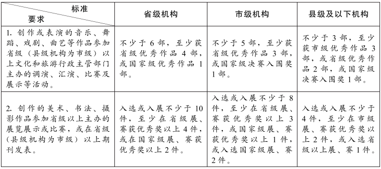 群众文化专业人员参加各层级职称评审(考试),除必须达到上述基本条件外,评定相应层级职称,还应具备以下对应条件。