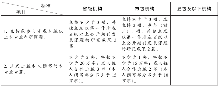 (一)本《标准》中的学历资历、专业理论、工作实绩、专业成果、研究能力条件必须同时具备。
