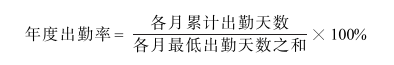 第十八条 履约考核结果包括月度出勤率和年度出勤率,具体计算方式如下: