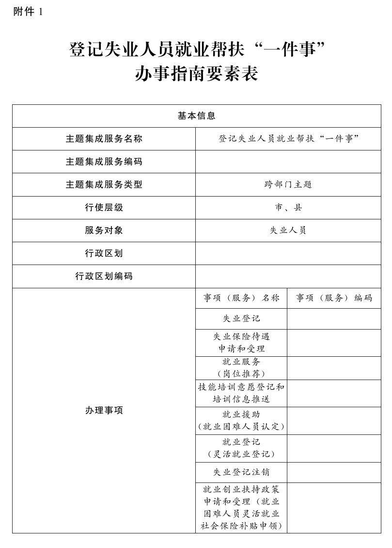 附件:1.登记失业人员就业帮扶“一件事”办事指南要素表