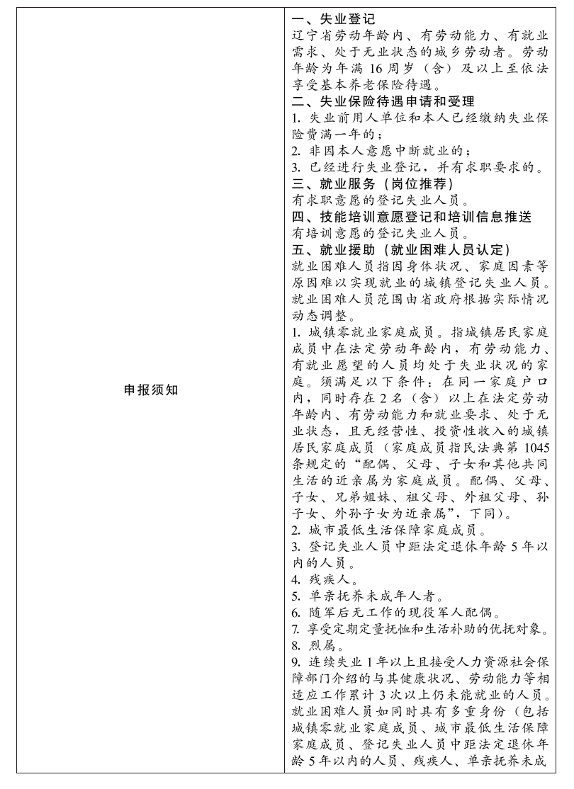 辽宁省内的失业人员(即法定劳动年龄内处于未就业状态的人员,包括就业转失业人员、新生劳动力中未实现就业的人员)。