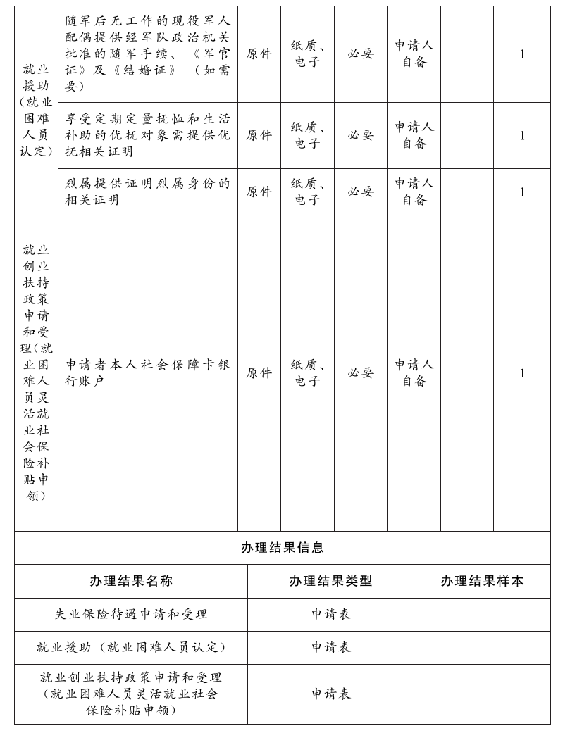 1.失业登记。申请人提交申请材料后,依托省就业管理服务信息系统,自动校验申报信息及材料,按照有关规定为申请人办理失业登记。