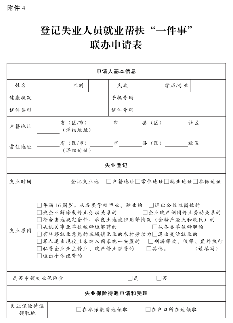4.登记失业人员就业帮扶“一件事”联办申请表