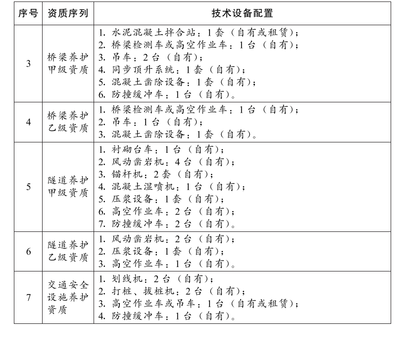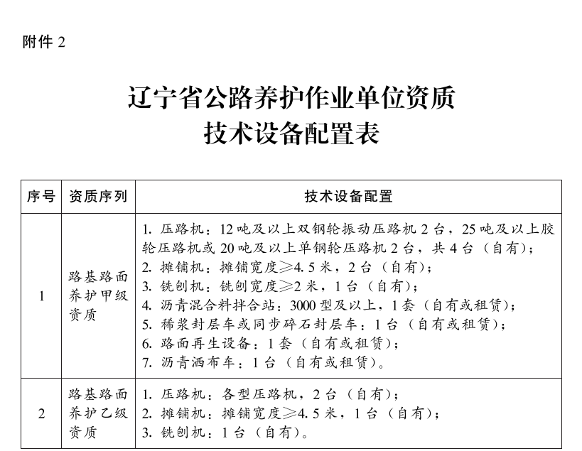 2.辽宁省公路养护作业单位资质技术设备配置表