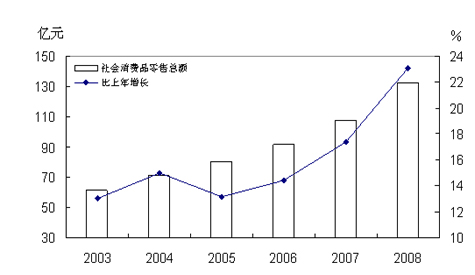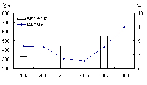 图1 2003-2008年地区生产总值及其增长速度