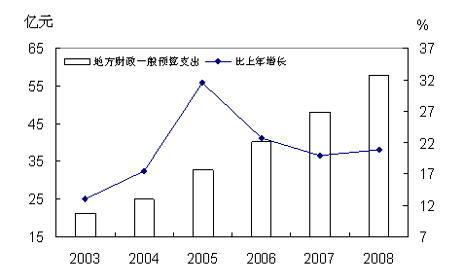 图9 2003-2008年地方财政一般预算支出及其增长速度