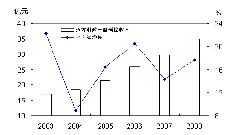 图8 2003-2008年地方财政一般预算收入及其增长速度
