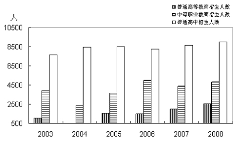 图10 2003-2008年各类教育招生人数