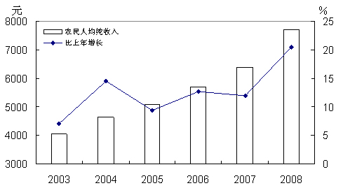 图12 2003-2008年农民人均纯收入及其增长速度