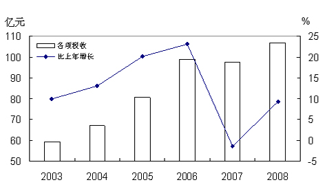 图7 2003-2008年各项税收及其增长速度