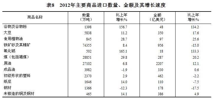 资料来源:本公报中城镇新增就业、登记失业率、社会保障数据来自人力资源社会保障部;外汇储备和汇率数据来自外汇局;财政数据来自财政部;水产品产量数据来自农业部;木材产量、林业、森林火灾数据来自林业局;灌溉面积、水资源数据来自水利部;新增发电机组容量、新增220千伏及以上变电设备数据来自中电联;新建铁路投产里程、增建铁路复线投产里程、电气化铁路投产里程、铁路运输数据来自铁道部;新建公路、港口万吨级码头泊位新增吞吐能力、公路运输、水运、港口货物吞吐量数据来自交通运输部;新增光缆线路长度、新增移动电话交换机容量、电话用户、上网人数等通信数据来自工业和信息化部;保障性住房、城市污水处理、城市集中供热面积、建成区绿地率数据来自住房城乡建设部;货物进出口数据来自海关总署;外商直接投资、对外直接投资、对外承包工程、对外劳务合作等数据来自商务部;民航数据来自民航局;管道数据来自中石油、中石化;民用汽车、交通事故数据来自公安部;邮政业务数据来自邮政局;旅游数据来自旅游局、公安部;货币金融、公司信用类债券数据来自人民银行;上市公司数据来自证监会;保险业数据来自保监会;教育数据来自教育部;安排科技计划课题、技术合同等数据来自科技部;国家工程研究中心、企业技术中心、新兴产业创投等数据来自发展改革委;专利数据来自知识产权局;发射卫星数据来自国防科工局;质量检验、国家标准制定修订数据来自质检总局;气象预警、平均气温、登陆台风数据来自气象局;地震数据来自地震局;测绘数据来自测绘局;海洋观测站、海洋灾害造成直接经济损失数据来自海洋局;艺术表演团体、博物馆、公共图书馆、文化馆数据来自文化部;广播电视、电影数据来自广电总局;报纸、期刊、图书数据来自新闻出版总署;档案数据来自档案局;体育数据来自体育总局;残奥会数据来自中国残联;卫生、新农合数据来自卫生部;社会服务、低保和五保供养数据、农作物受灾面积、洪涝地质灾害造成直接经济损失、旱灾造成直接经济损失、低温冷冻和雪灾造成直接经济损失来自民政部;国有建设用地供应数据来自国土资源部;自然保护区、环境监测数据来自环境保护部;安全生产数据来自安全监管总局;其他数据均来自国家统计局。