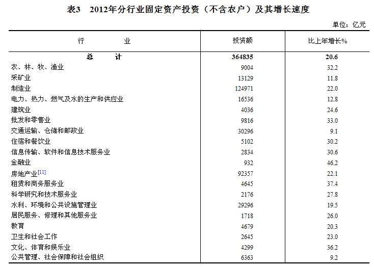 [7]2012年起,国家统计局执行新的国民经济行业分类标准,工业行业大类由原来的39个调整为41个,固定资产投资(不含农户)行业分类也按新的标准进行了调整。