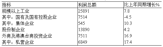 1-11月全国规模以上工业企业累计实现利润25891亿元,比上年同期增长7.8%。