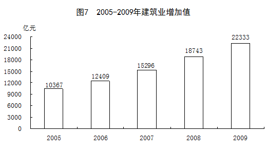 全年全社会建筑业增加值22333亿元,比上年增长18.2%。全国具有资质等级的总承包和专业承包建筑业企业实现利润2663亿元,增长21.0%,其中国有及国有控股企业697亿元,增长23.9%。